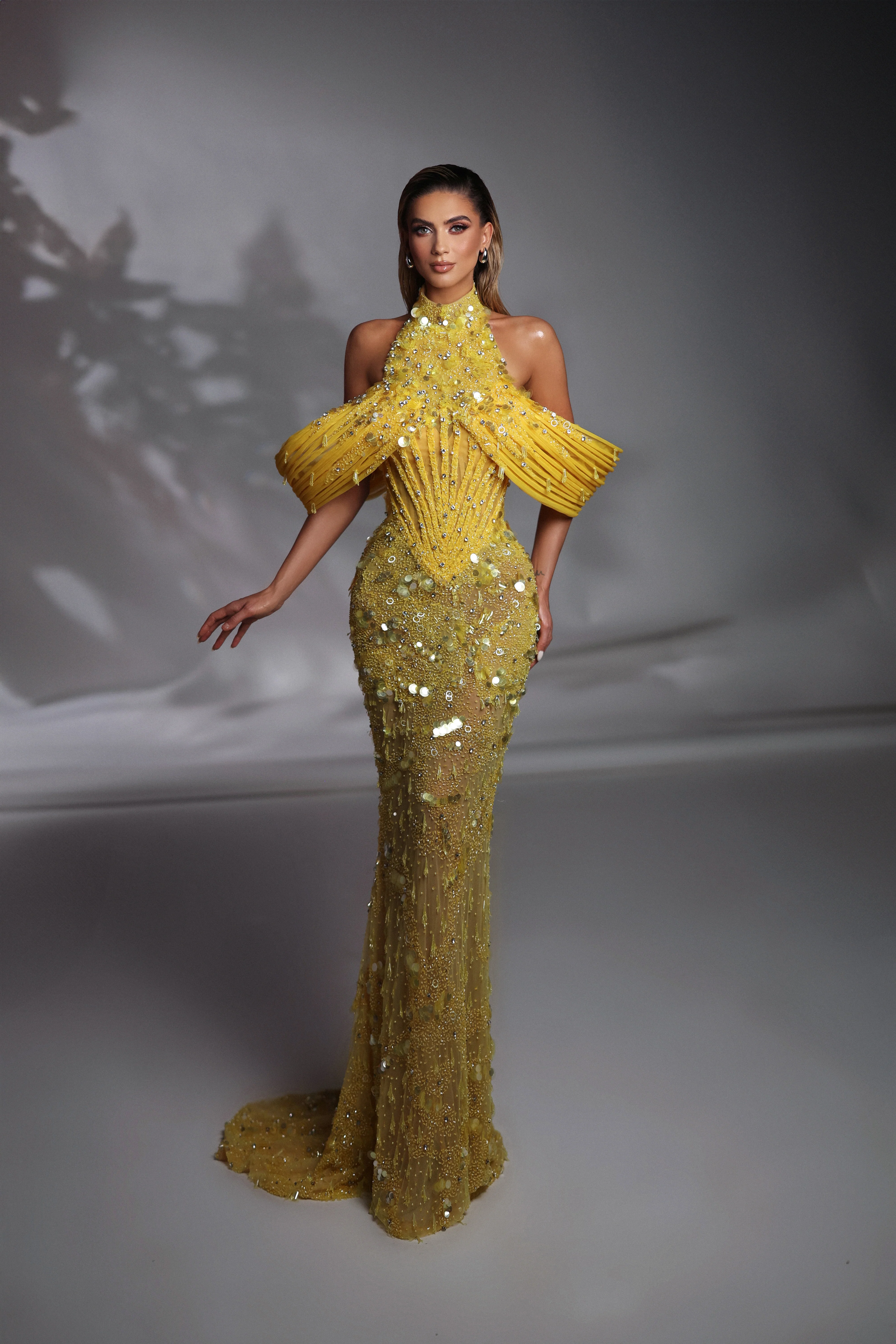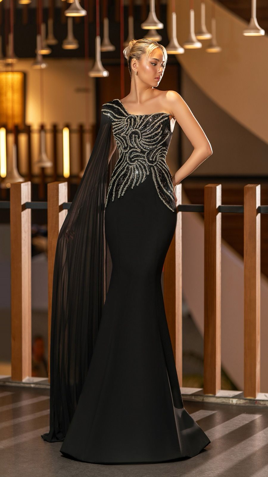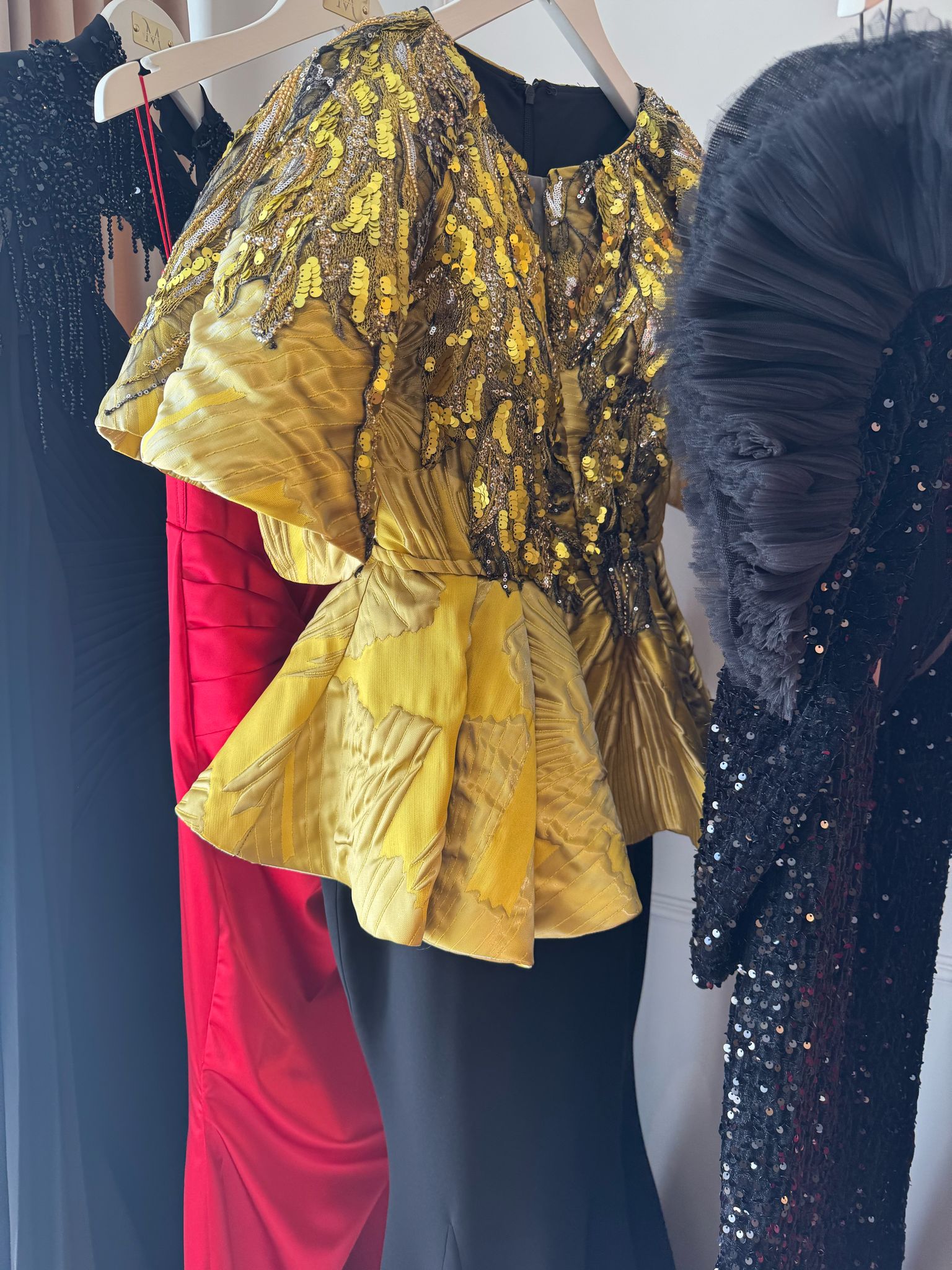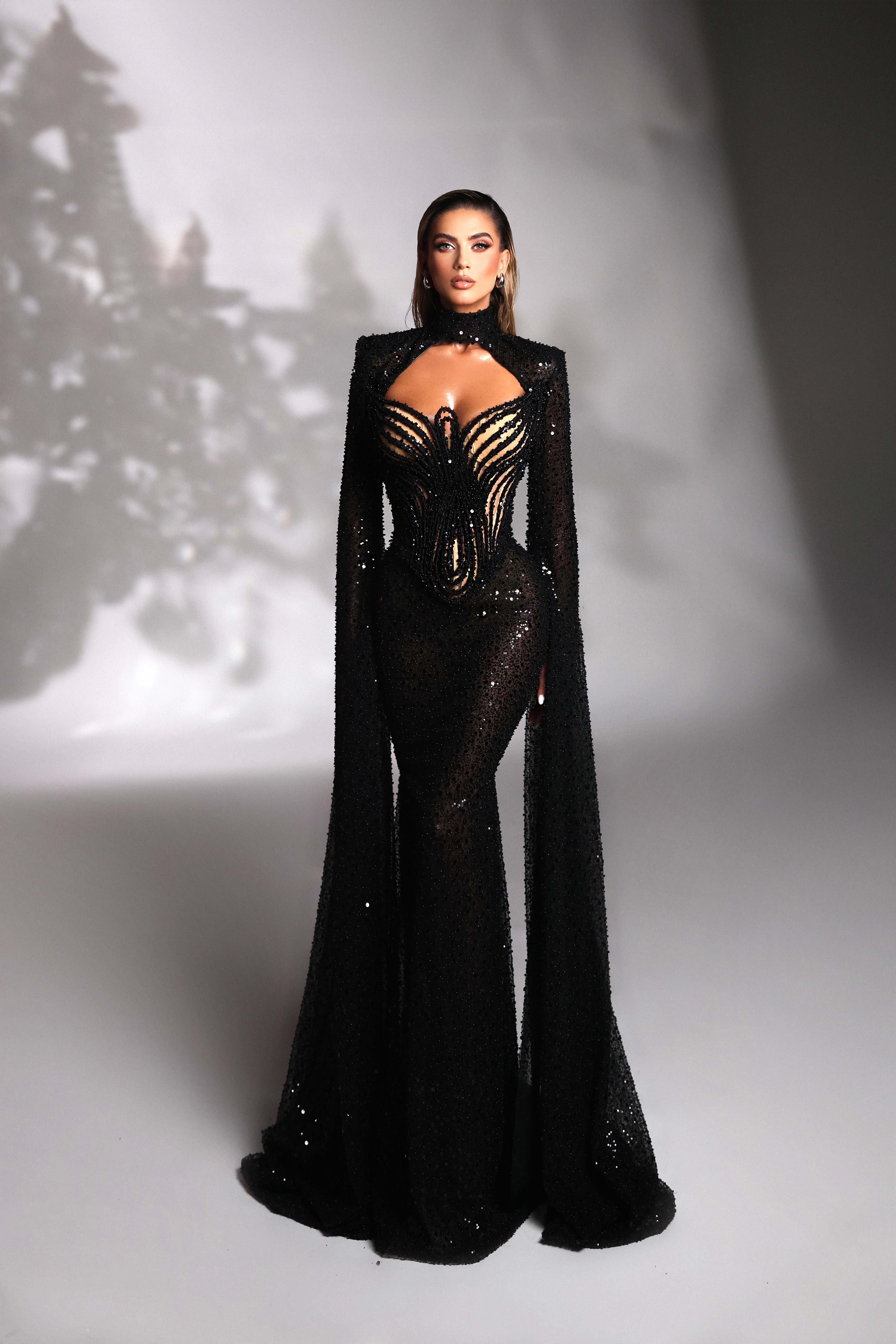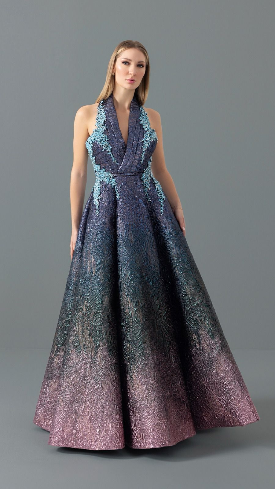 Blue embellished dress with leaf corset